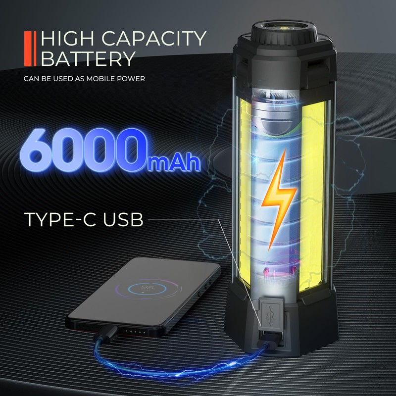 • 【WITH A CARRYING BAG】Our work light with stand is a combination of COB and LED flashlight, suitable for outdoor camping, hiking, fishing and other activities, also suitable for long time working projects. Rechargeable camping light package comes with a carrying bag and type c charging cable, we can use it anytime, whether indoor or outdoor.