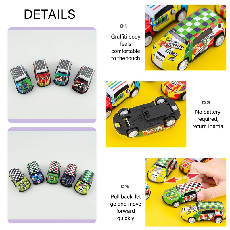 - 【Educational toy】The mini cars help improve hand eye coordination and early learning skills. The size is perfect for small hands, and can travel a long distance with a simple pull back action.