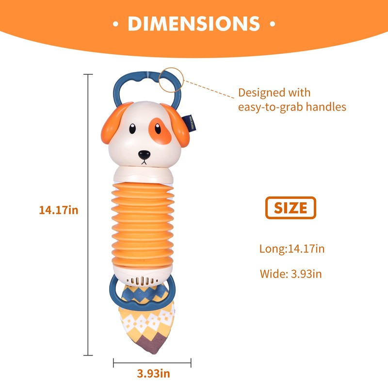 - Sensory development of the baby: the elephant accordion toy has 14 cute voices, and the sound is changed by the buttons on the nose and tapped on the body of the elephant, and it also makes fun small sound effects. Designed with easy to grip handles, it is perfect for little hands, can attract baby's attention, stimulate the child's imagination, one of the best sensory baby toys, preschool toys that are helpful for early education.