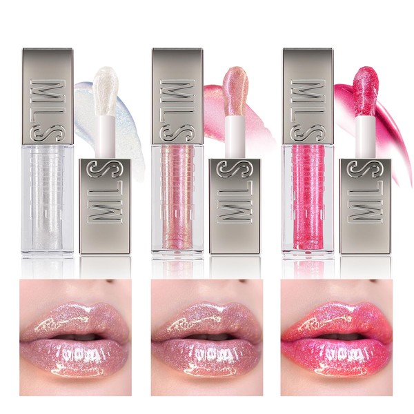 MLSMILE 3 PCS High Shine Glitter Lip Gloss,Diamond Glitter Lip Gloss Long Lasting Moisturizing Lip Gloss Non-sticky Glossy Glitter Liquid Lipstick for Women,girls 0.33fl oz
