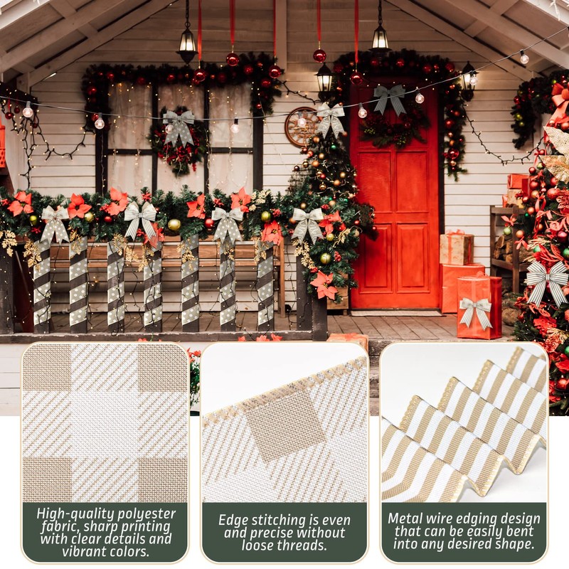 • 【Wired Edge Ribbon】The farmhouse ribbon is wrapped with high-quality wire on both edges, and the edge stitching is even and precise, without loose threads, ensuring that it is durable and long-lasting. The design of the wired edge allows the ribbon to be easily bent into the desired shape, enhances its stability and flexibility, ensuring that it maintains its shape even after being manipulated.