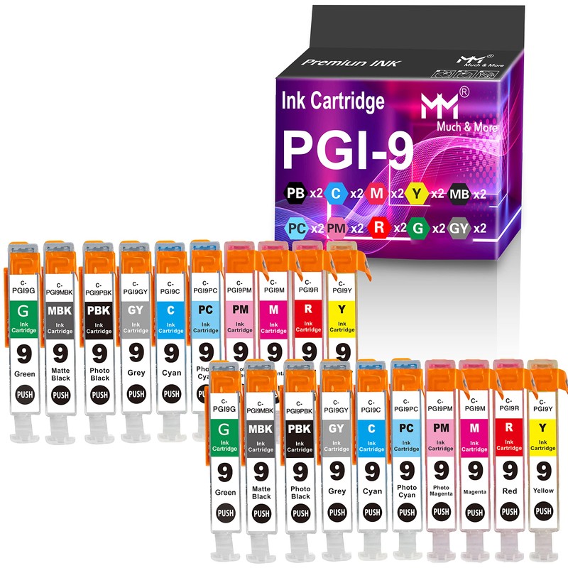 MM MUCH & MORE Compatible Ink Cartridge Replacement for Canon PGI9 PGI-9 PGI 9 to Used with Pixma Pro 9500 Pro 9500-Mark II Printers (20-Pack, 2-Set, 2 x Each PBK, MBK, C, M, Y, PC, PM, R, GY, G)