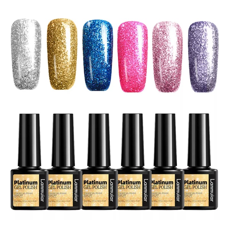 MM11 Esmaltes De Uñas Gel Con Purpurina Dorada Plateada 6 Color