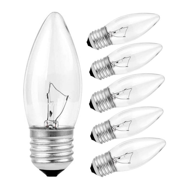- Dimmable and Versatile:Lamp Base: 60 watt incandescent light bulbsStandard E26/E27 base Dimension(cm) : Diameter 35mm*Length95mm / 1.37*3.75inches Voltage (V) : AC 110-130V Package Including:6 pack Chandelier Light Bulbs