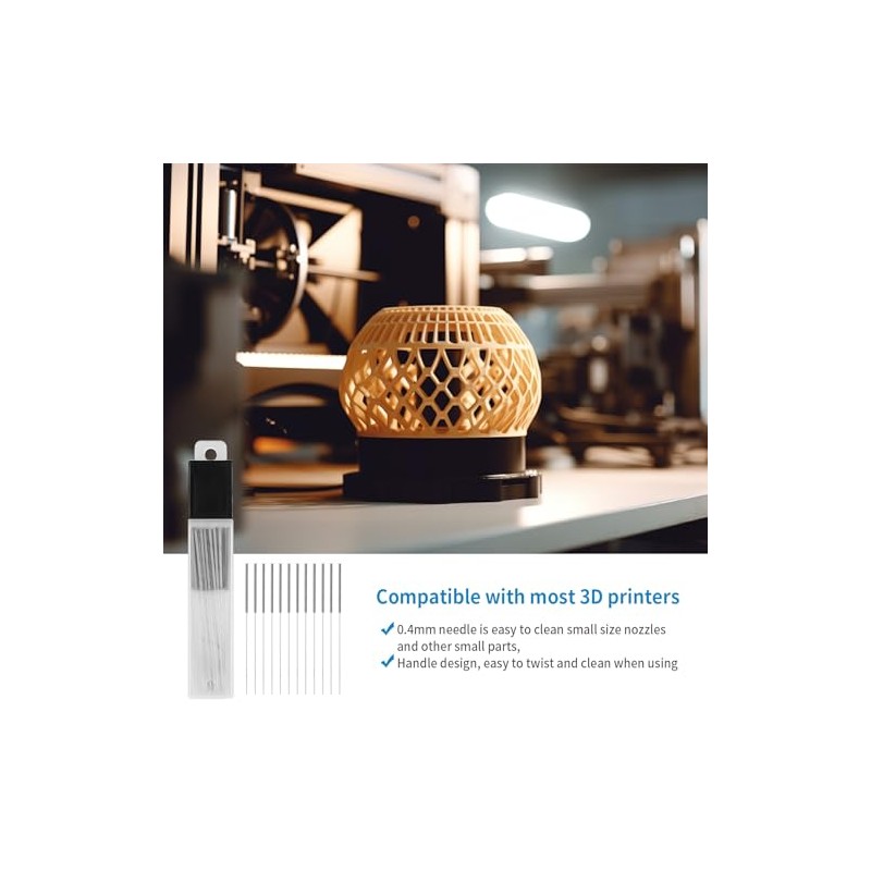 - Suitable Size: The length of the 3D printer nozzle cleaner needles is 8cm/3.15 Inch and the diameter is 0.4mm, compatible with most 3D printers. Cleaning the printer regularly will keep the printer in good operating condition and result in better printing results.