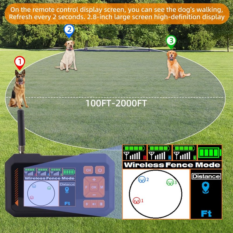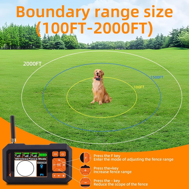 - Flexible Boundary Control – Set a custom fence range from 100 to 2000 feet, giving your dog the freedom to play while keeping them safe.