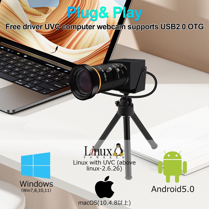 - 【5-50mm Manual Focus Zoom Lens】With an adjustable focal length of 5-50mm, you can get clear images at different focal lengths using the manual focus ring and aperture ring. The 4K usb camera features a 10x optical zoom to capture distant subjects in large, high-quality images. It also has a 2x digital zoom function, which is recommended for getting closer to your subject and capturing it in high quality.