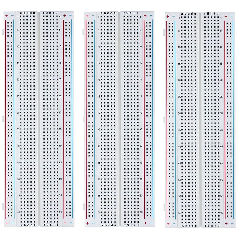 - Set Contains: 3pcs Breadboard 830 Point Solderless Prototype PCB Board Size: 6.5 x 2.1 x 0.3 inches / 16.5 x 5.5 x 1 cm