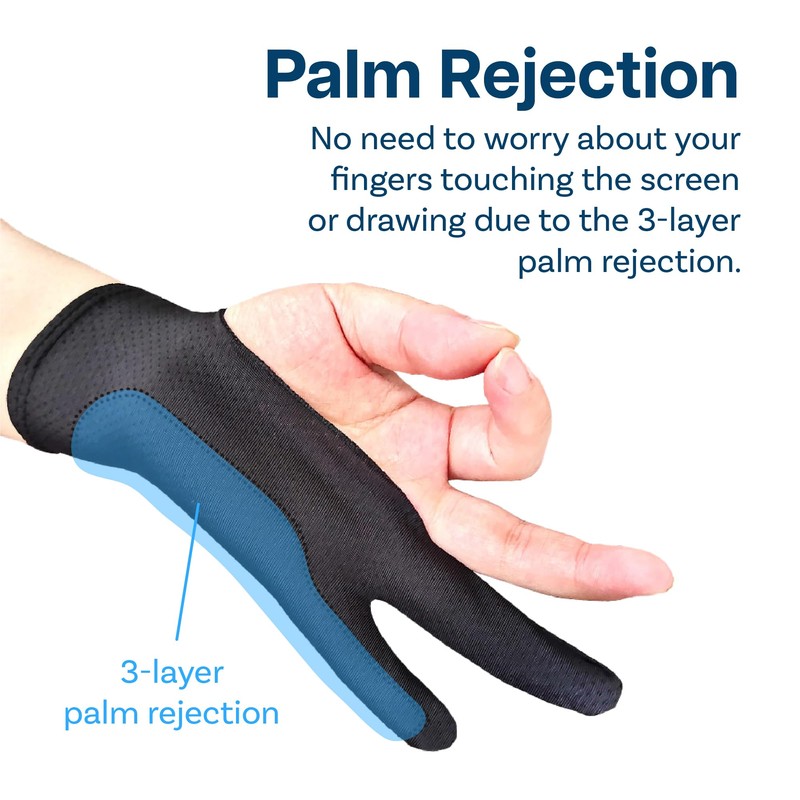 - Anti-fouling design - The two-finger artist glove reduces smudging during traditional sketching or painting. Plus, the 3-layer palm repellency prevents your palm from coming into contact with the tablet screen. This makes drawing on a graphic tablet easier.