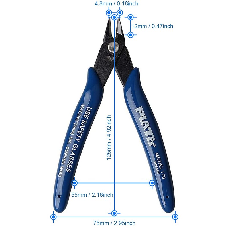 • The micro cutting pliers has a 15mm long jaw with an angular head for flush cutting applications up to 16 AWG (1.3mm) of copper and soft wires.