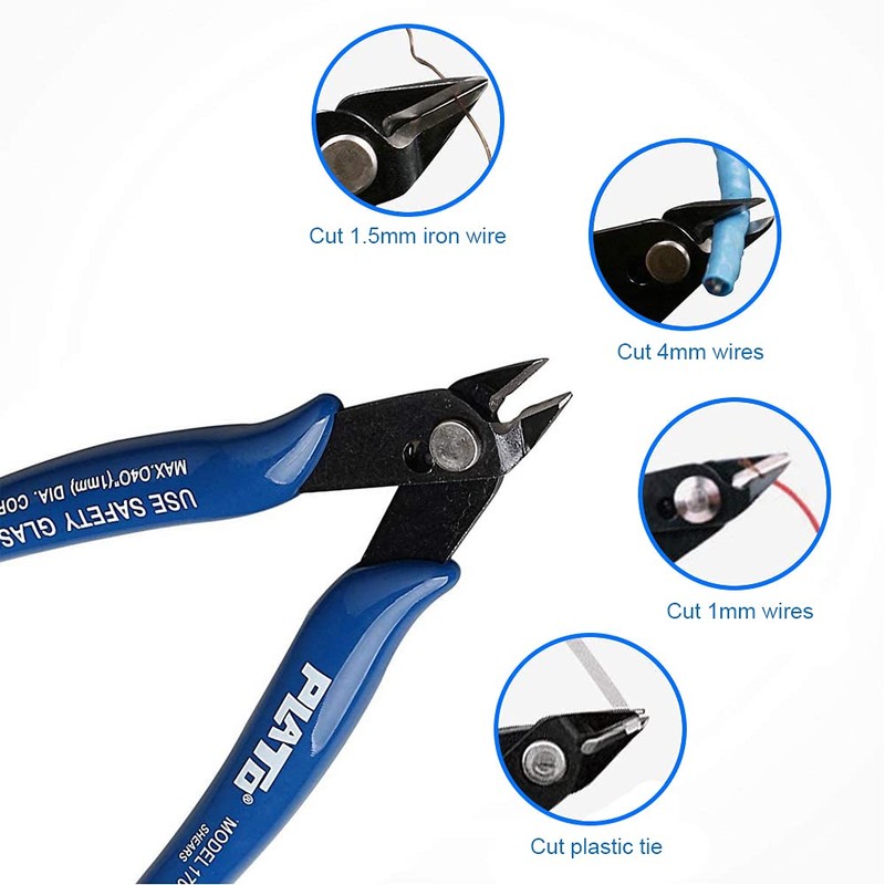 • The set includes 1 precision cutting pliers for almost all types of cutting jobs. Supplied with a protective plastic cover to protect the sharp jaw of the precision wire cutter when stored or when traveling.