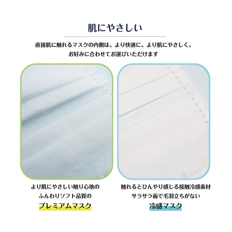 - Uses a 3-layer non-woven fabric filter that securely captures micro particles such as viruses, house dust, crumbs and pollen, PM2.5 etc. The inner layer that touches the face is made with a cooling sensation. The ear straps are made of flat rubber that is difficult to pain. The nose wire fits the lines of your face to reduce gaps. It does not suffer breathing and does not get stuffy, and has a relaxed 3D pleat type. The Q-MAX value is measured at least 0.34. The cooling feel is that the skin feels cold as the moment it touches objects. The number of this senses is Q-MAX values