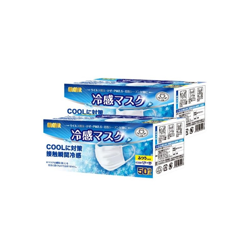MMR Cooling Mask, Pleat, Regular Size, Pack of 50 (2 Boxes, 100 Sheets), Approx. 3.7 x 6.9 inches (95 x 175 mm), Cool to Contact Q-MAX 0.34 or More Measurement Results, Cool, Summer, Cold, Non-woven