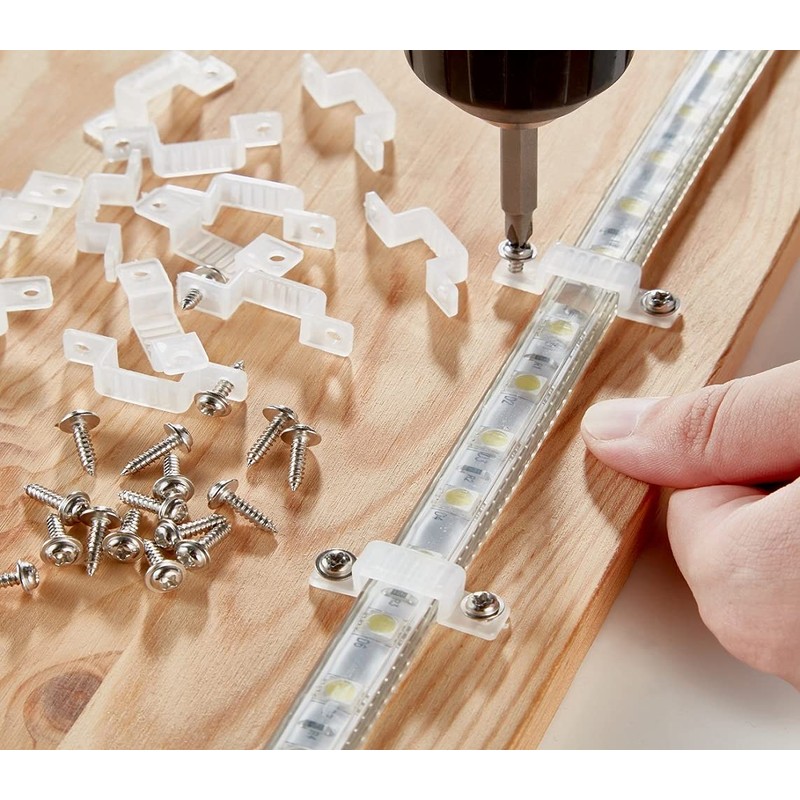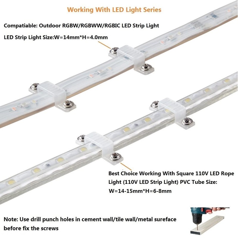 1)Double holes and rigid : hollow heigh only 6.0mm/0.24inch so this mounting clip more cling to the led rope light.more tight after fix the screws.never worry about the led rope light slide or drop.