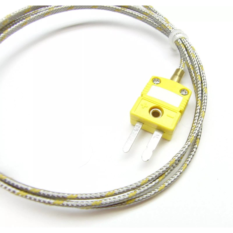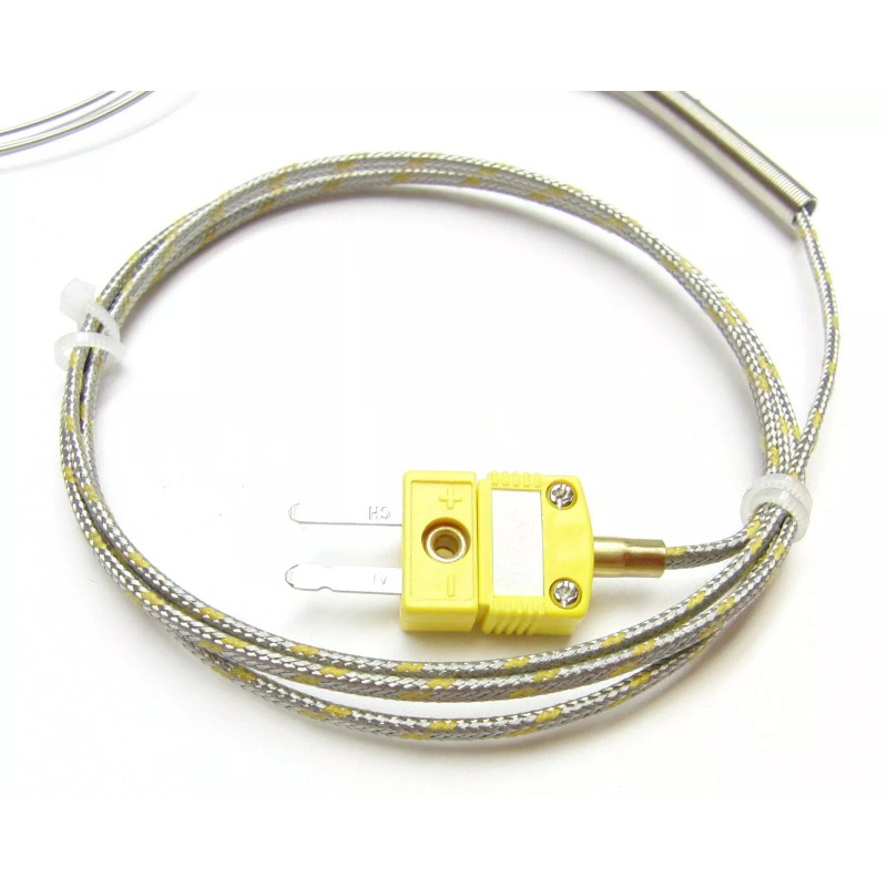 This is a high quality k-type thermocouple with a ultra thin stainless steel insertion probe, which is good up to about 500 degree C Celsius or about 932 degree F Fahrenheit continuous use, and short term up to 800 C or 1472 F. The diameter is 0.040 inch or 1.0 mm. The 316 stainless steel probe is 3 ft (95 cm or 950 mm) long with a blunt rounded tip and has a spring loaded strain relieve. It comes with a high quality miniature k-type thermocouple connector which has blades made from K-type compensating metal chromel / alumel. The thermocouple plug has a brass strain relieve. The wire has a fiber glass inner insulation and stainless steel outer braid. This k-type thermocouple probe can be used for a wide range of applications and with the SS316 stainless steel sheath is protected from most corrosive substances. This k-type thermocouple can be mounted in ovens, kilns or furnaces. It is also used to monitor machines and liquids in industrial processes. In metal working it can be used to measure some melted metals, for example it can be inserted into molten lead in bullet casting and some melted aluminum. It can be mounted in ducts, pipes, exhaust pipes to measure the temperature of gas or liquid.