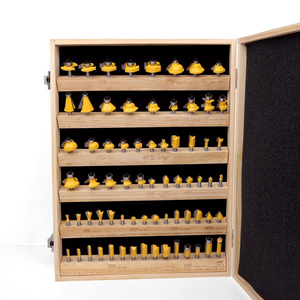 MNA 70 Piece Router Bits Set, 1/4 Inch Shank Expert Router Bit Kit with Wooden Storage Case, Tungsten Carbide Router Bits Kit for Woodworking