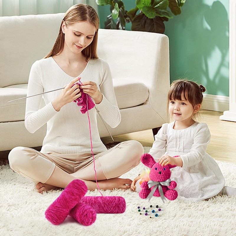 - 【Chenille Knitting Kit】: Contains 3 rolls of chenille yarn (100 grams per roll ≈ 150 meters, 3 rolls total 450 meters) + 14 plastic dolls' buttonholes. The crochet yarn is made of high-quality, environmentally friendly and skin-friendly materials, feels delicate and comfortable and is odourless.