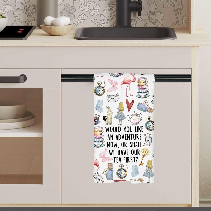 MNIGIU Cartoon Movie Lover Gift Would Like an Adventure Now Or Shall We Have Our Tea First Kitchen Towel Fairy Tale Towel