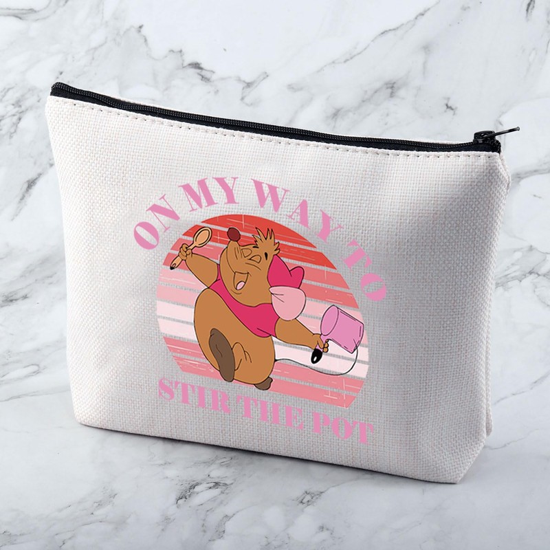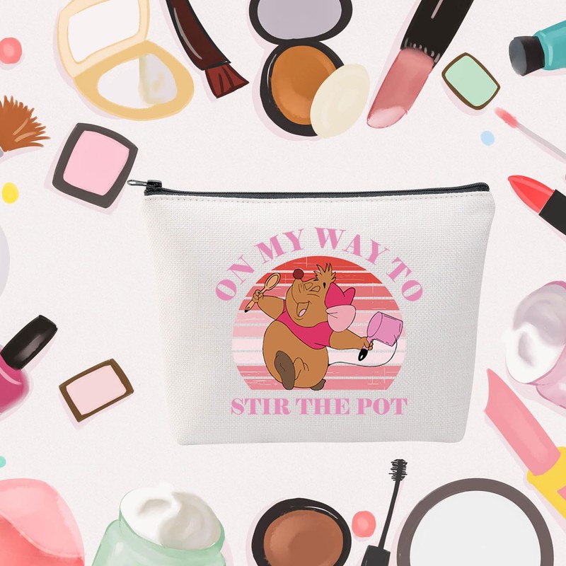 MNIGIU Funny Mouse Makeup Bag Princess Inspired Gift On My Way To Stir The Pot Cartoon Mouse Lover Gift Fairy Tale Lover Gift