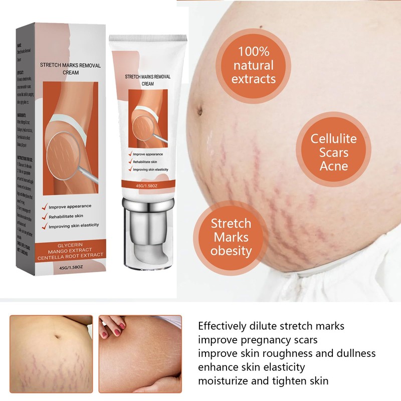 - Sie erhalten eine 45 g Flasche Anti-Dehnungsstreifen-Creme, die sich perfekt für die tägliche Massage eignet, um Dehnungsstreifen vorzubeugen und neuen Müttern zu helfen, ihre Haut zu pflegen, auch während der geschäftigen Kinderbetreuung.