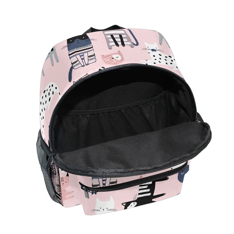 Mnsruu Kids Toddler Backpack Pink Dot Cat Preschool Kindergarten Bookbag Nursery Travel Bag for Boys Girls Daycare