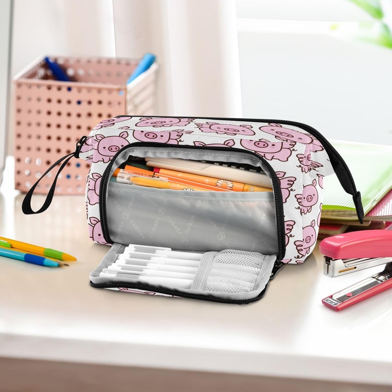 Mnsruu Little Pig Big Capacity Pencil Case Pouch Pen Case Pencil Box Stationery Office Organizer Bag for Adults