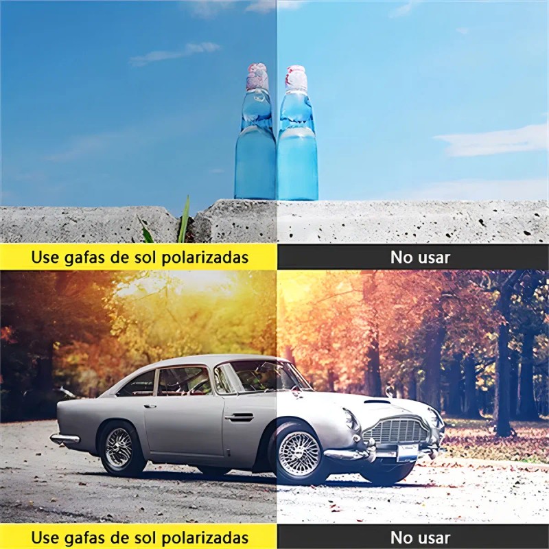 Lentes polarizadas 100% UV400: proceso de producción avanzado, bloquea el 100% de los rayos UVA y UVB, más resistentes a impactos y rayones que los recubrimientos de lentes tradicionales, protegiendo sus ojos del daño UV a largo plazo y manteniendo sus ojos saludables. También reducen el deslumbramiento reflejado por las carreteras, masas de agua, nieve y otras superficies horizontales, proporcionando comodidad y mejorando la visibilidad.
