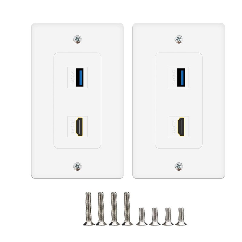 - HDMI USB Faceplate - HDMI port supports all HDMI 2.0 functions, 4K, HDR,Backwards compatible with HDMI version. Perfect for home theater systems, video game systems, Blu-ray player, TV boxes and more.