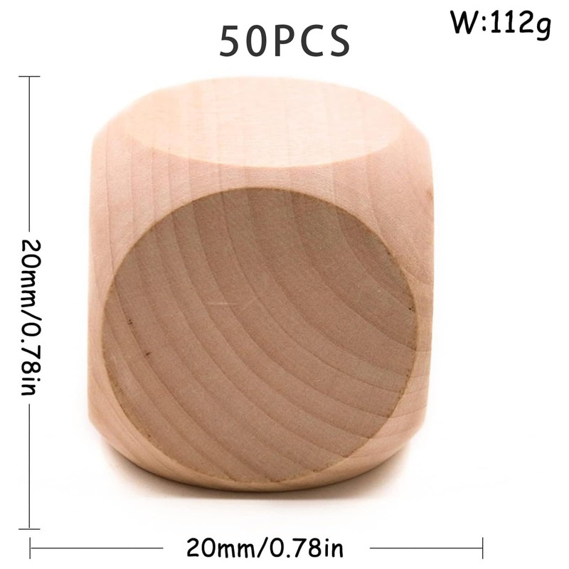 - THE PERFECT SET The set contains 50 cubes blank made of high quality wood, ideal for all DIY projects. Each cube has a size of 20mm, the perfect choice for craft projects, puzzles, board games and decorations, lightweight and easy to handle.