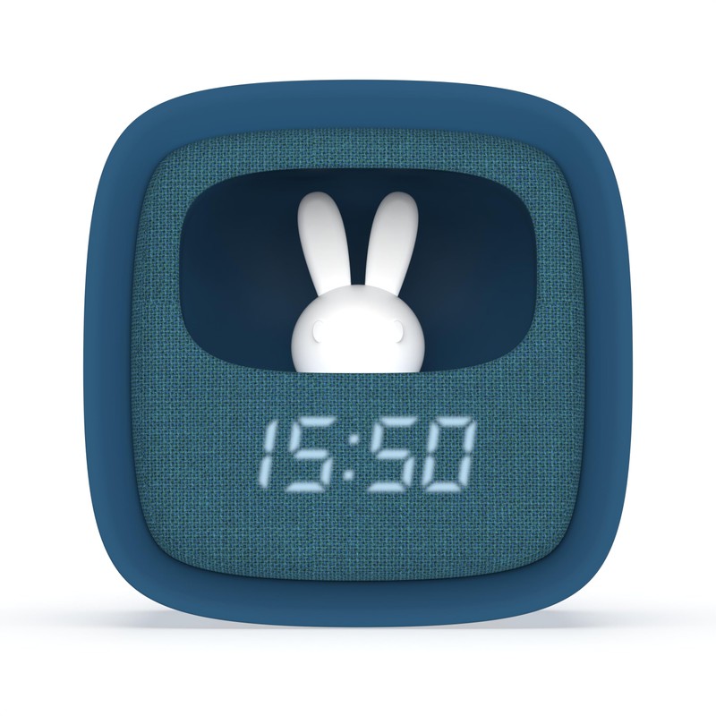 MOB – MOBILITY ON BOARD Billy Clock Kids Rabbit Night Light Alarm Clock and Night Light for Kids, Fabric Front, Plastic Frame, Soft Touch Programming Date, Time and 3 Alarms (Blue)