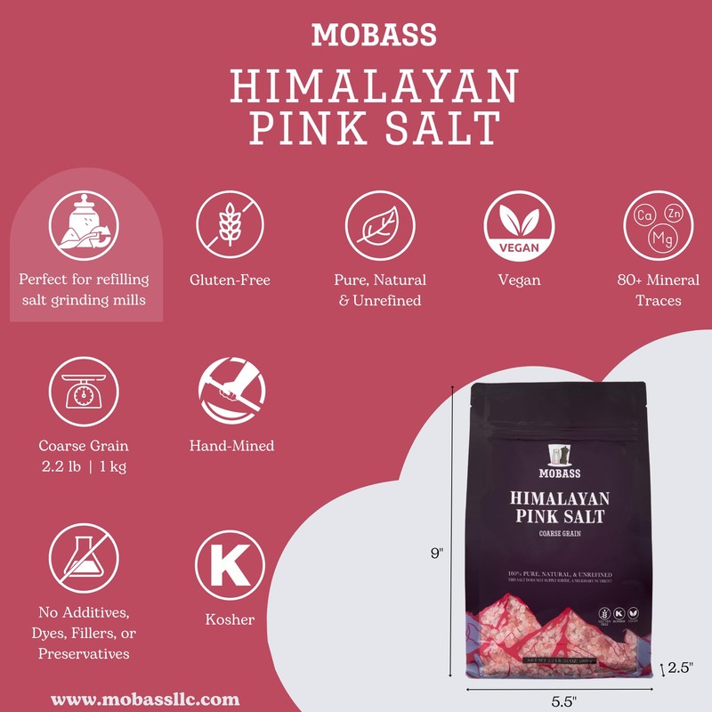 Mobass Mobass Himalayan Pink Salt C 2.2 lbs (35.2 oz) Coarse Grain Resealable Pouch | 100% Natural & Unrefined | Rich in 84+ Trace Minerals | Perfect for Salt Mills and Grinder Refills | Ideal for Cooking, Bath Soaks, and Wellness