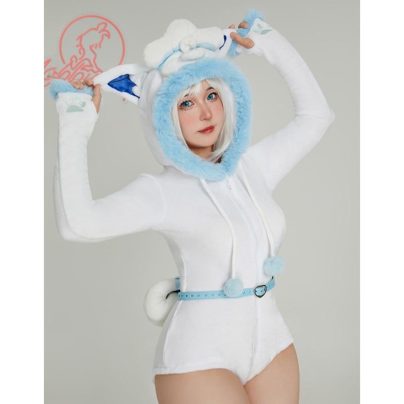 Mobbunny Women's Anime Cosplay Costume Fluffy Romper Onesie Pajamas White Blue Furry Hooded Bodysuit Bodycon Sleepwear