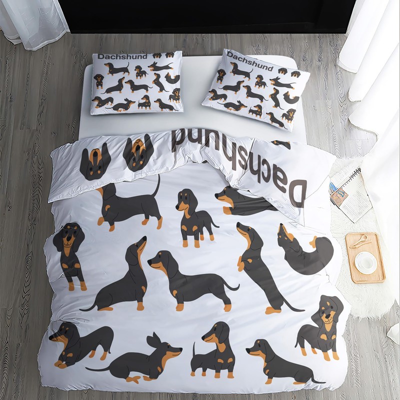 MOBEITI Dachshund Bed Linen 135 x 200 cm, Dachshund Dog Motif Reversible Bed Linen, Soft Cuddly Microfibre Duvet Cover Set 2-Piece, 1 Pillowcase 80 x 80 cm, with Zip - Dachshund Decoration & Gifts