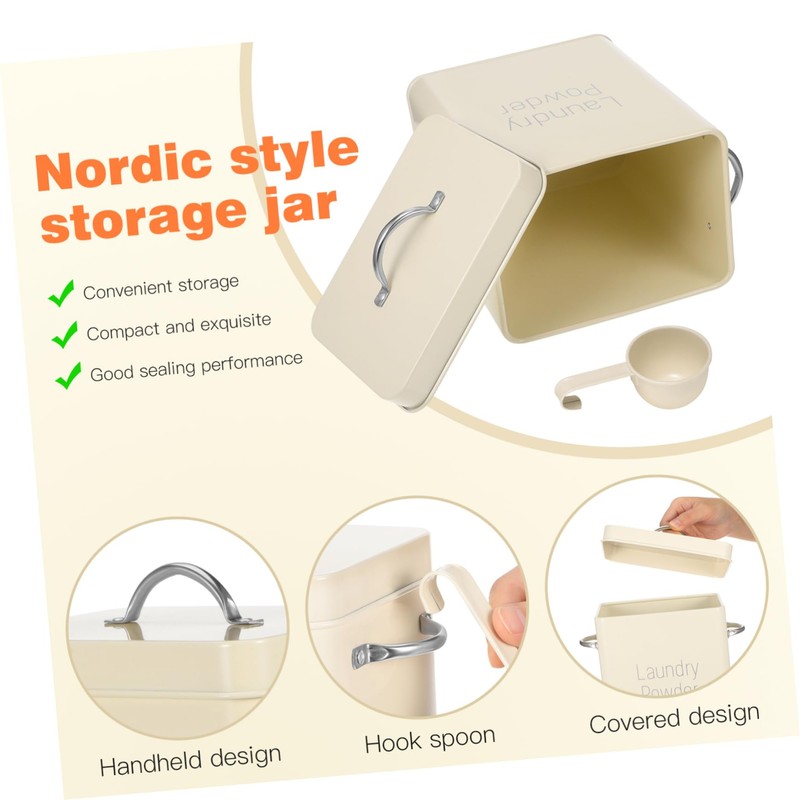 -Easy to clean, just wipe the inside with and water, then air dry or wipe dry with a towel Laundry Powder Container.