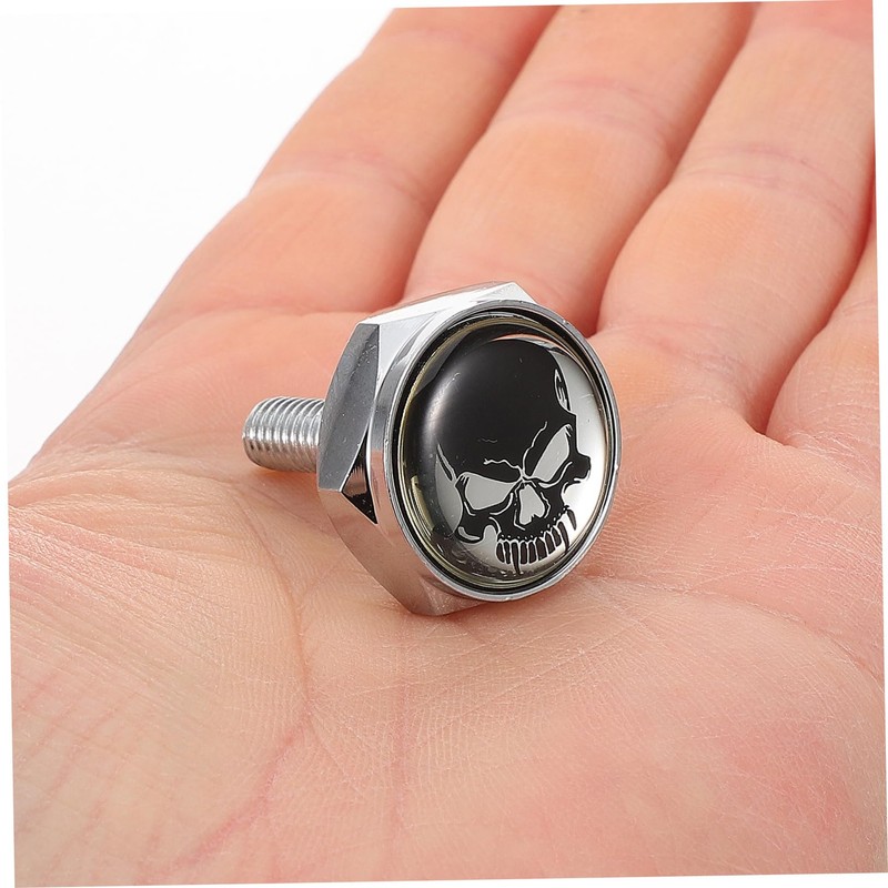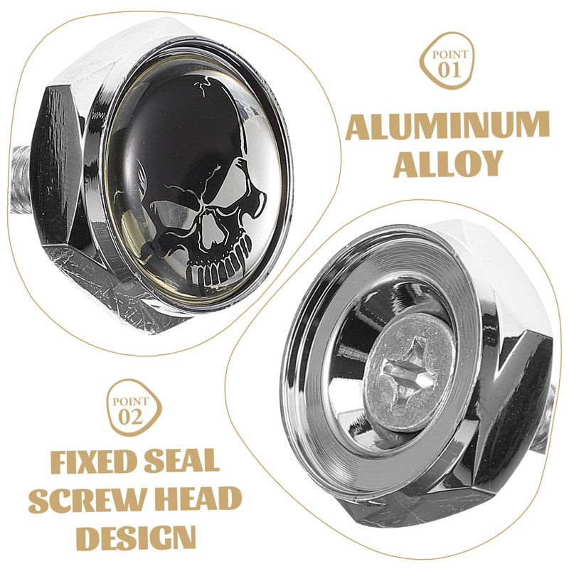 - Fixing screw for license-- unique skull head design incorporated to add a great touch to the product.