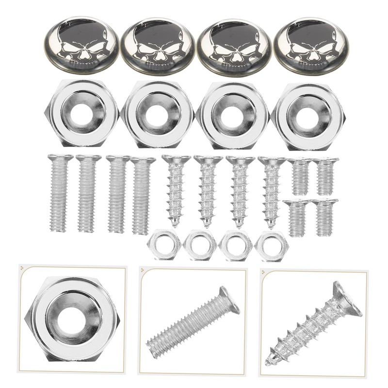 -The unique skull head design sets your license plate apart from others, giving it a distinctive and stylish look stainless steel license plate screws.