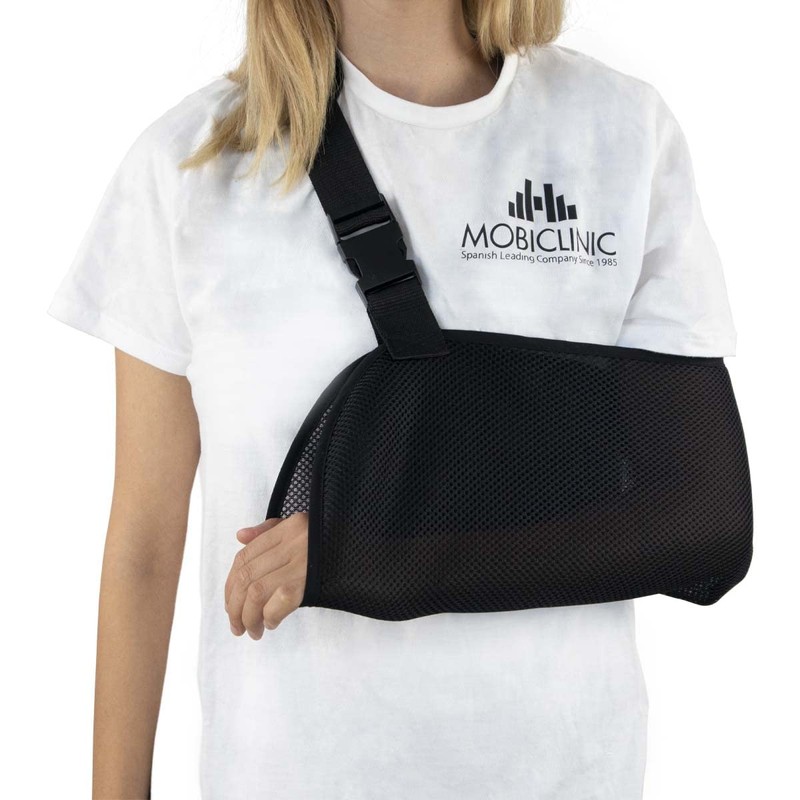 Mobiclinic, Arm Sling Shoulder 3D Mesh Breathable One Size Adjustable Strap Forearm 36cm Arm Sling for Broken Arm Arm Sling Immobilizer Black Black