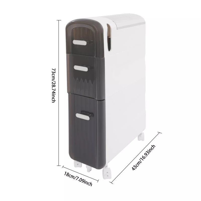 Mobile 3-Drawer Slim Bathroom Storage Cabinet, For Narrow Bathroom Storage