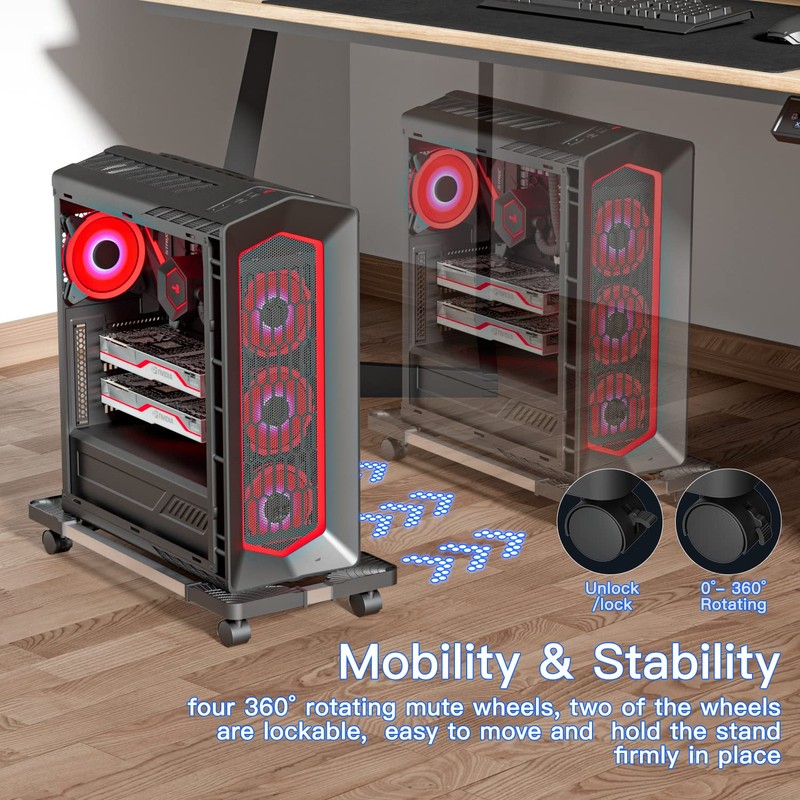 √ 4 wheels help you move the PC tower easily, easier access to back of the computer, and it's convenient for you to clean up the ground.