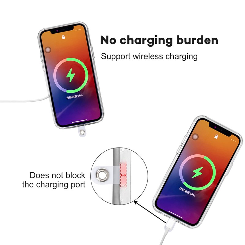 - Easy installation: tool required, simply insert the pad into the charging hole of the fully covered phone case, then insert the phone and connect the lanyard, do not block the charging port, support wired and wireless charging, no disassembly required. Offer you more comfort. If you have any questions, please feel free to contact us.