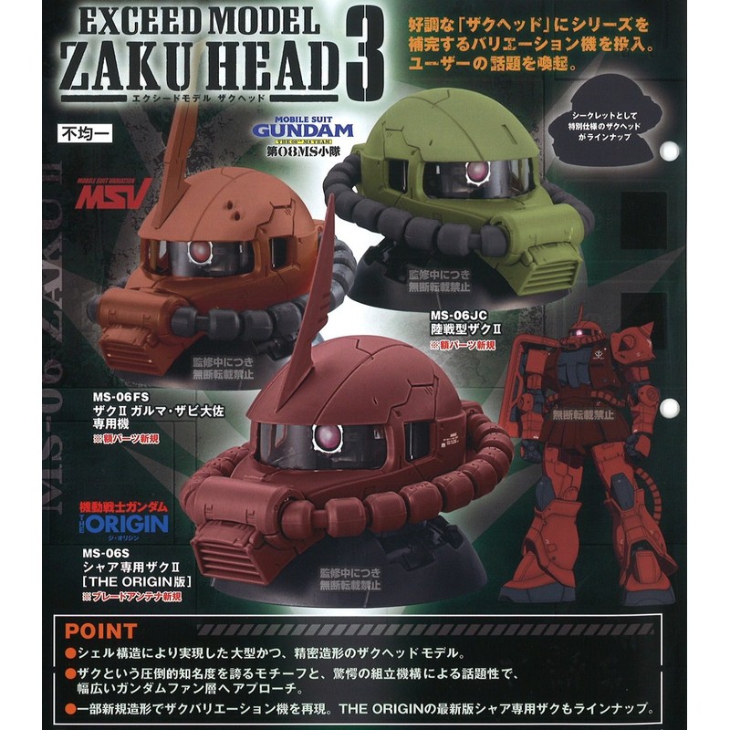Mobile Suit Gundam Exceed Model, Zaku Head 3, Secret Rare Included, Set of 4 Types, EXCEED MODEL ZAKU HEAD, Bandai, Gachapon, Gashapon