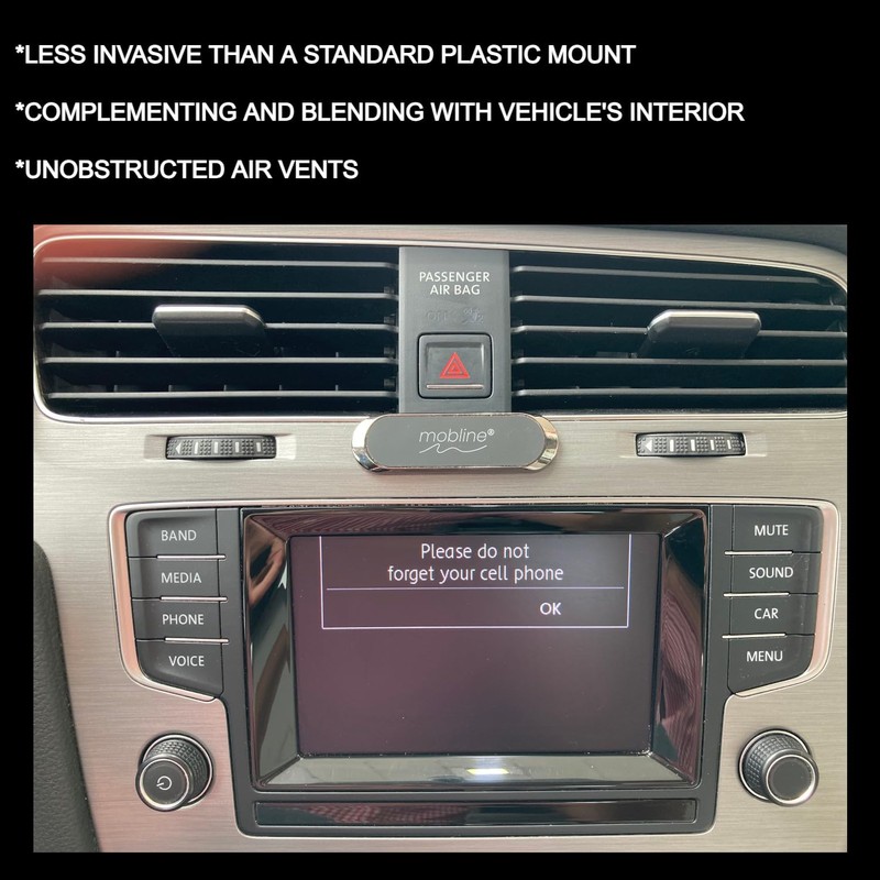 - VISIBILITY: With its discreet and non invasive size it allows installation in more locations on the dashboard than any other types of phone holders available, without obstructing visibility or damaging air vents due to device weight or road conditions;