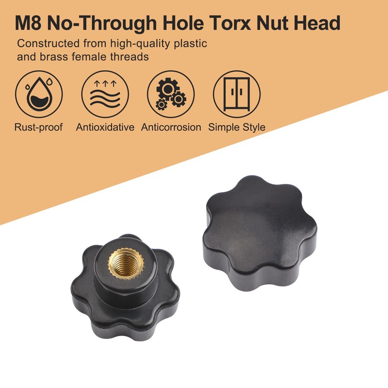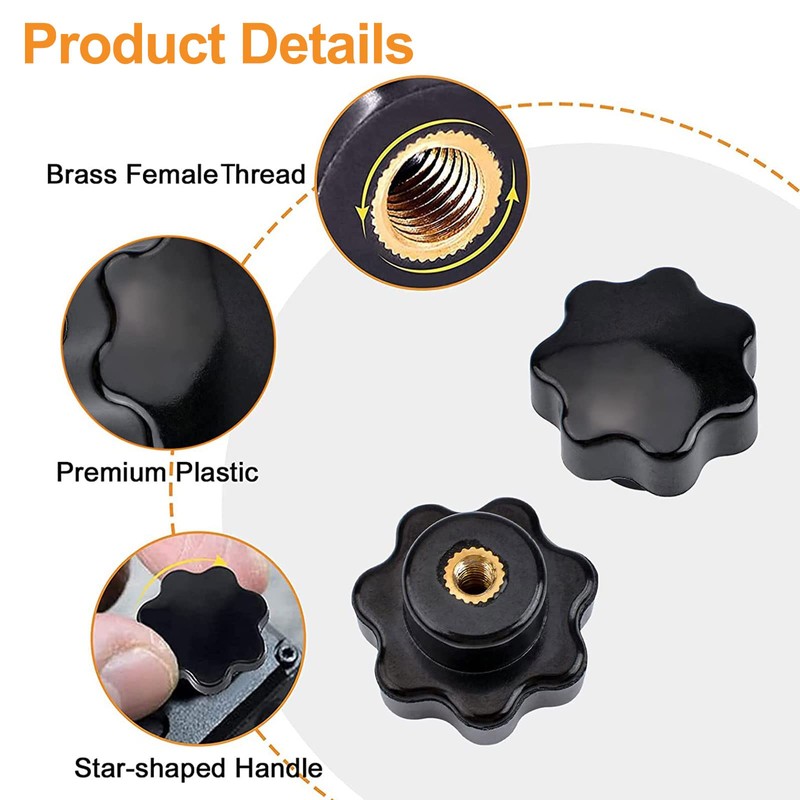 - Hochwertiges Material: Die Griffoberfläche der M8 Sternkopfschraube ist aus hochwertigem Kunststoff, glatt ohne Widerhaken, und das Innengewinde ist aus Messing, das korrosionsbeständig, rostfrei und langlebig ist.