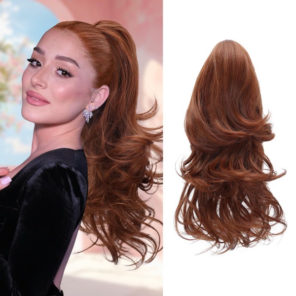 MOCA HAIR Ponytail Extension,Auburn 18 Inch Claw Clip Ponytail Extension, Soft Wavy Curly Clip on Ponytails for Women Heat Resistant Synthetic Hairpiece for Daily Use