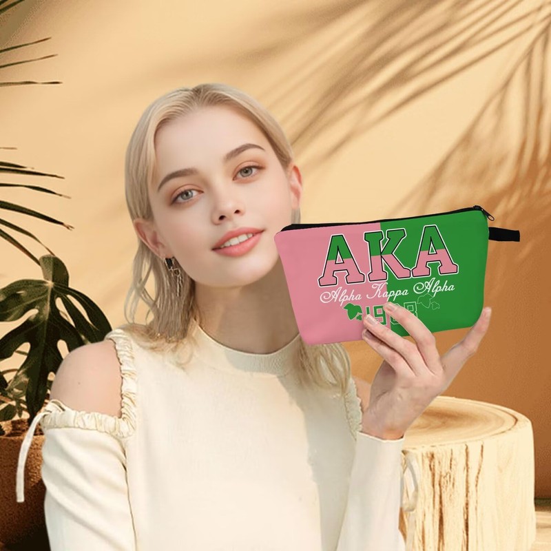 MoCaliduccious AKA Alpha Kappa Alpha Print Makeup Bag 1908 Design Cosmetic Organizer Sisterhood Birthday Gift Festival Present for Women Teens Travel Beauty Pouch