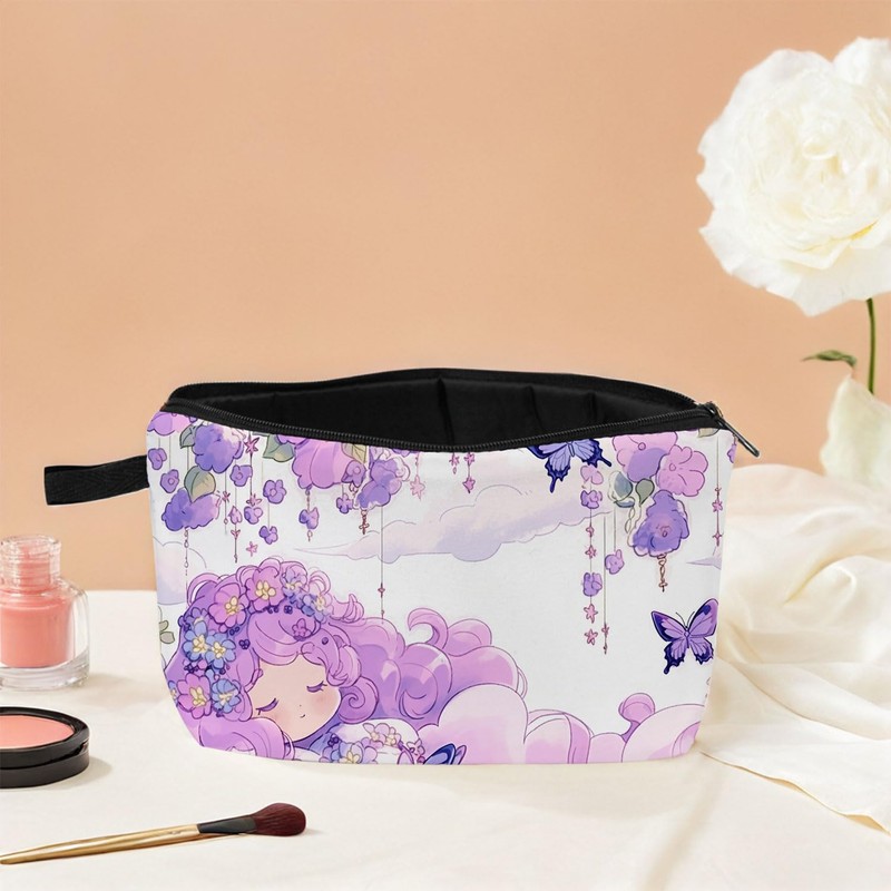 - Material: Our Butterfly Flower printed makeup bag is crafted from polyester with a sponge-lined fabric, incorporating a thickened inner layer that offers effective cushioning and protection for cosmetics, while the surface remains comfortable and resistant to pilling.