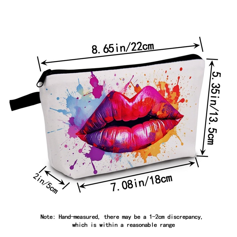 - Material: Our Lip printed makeup bag is crafted from polyester with a sponge-lined fabric, incorporating a thickened inner layer that offers effective cushioning and protection for cosmetics, while the surface remains comfortable and resistant to pilling.