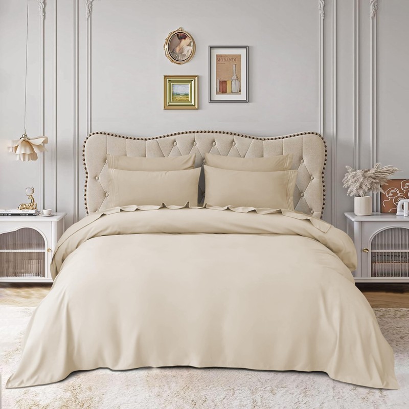 Mocassi Luxury Queen 4-Piece Sheet Set - 1800 Premium Hotel Quality - Easy-Fit, Wrinkle, Fade Resistant Bed Sheets and Pillowcases - All Around Elastic Fitted Sheet, Deep Pocket, Cream