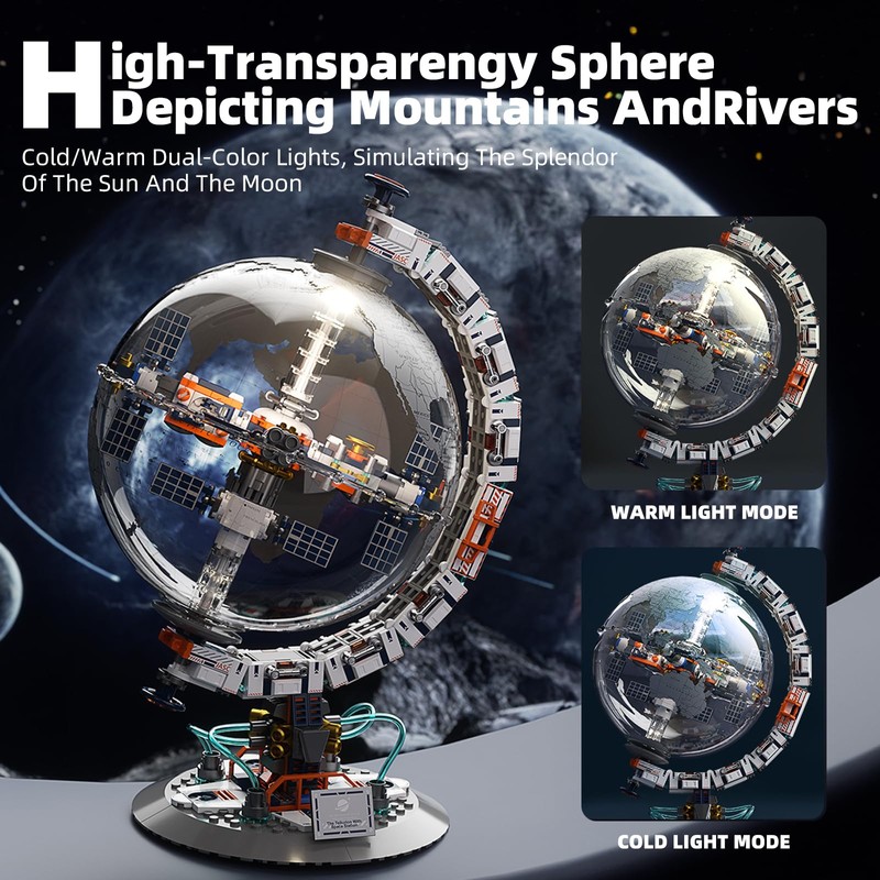 - Ideals Learning Gift for Teenagers and Students: 1:64 000 000 high-definition geographic map with English remark, 360° rotation, full-view exploration of the sphere. Bring the wonders of space exploration right into your home with this rotatable globe display model featuring detailed satellite and space station replicas orbiting a realistic Earth globe. Comaptible with technic Earth 42179.