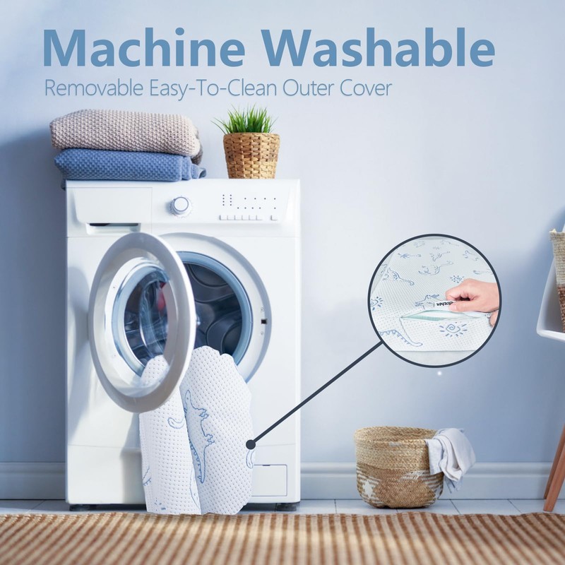 - Good Breathability: The outer cover of the trifold pack and play mattress is made of breathable and skin-friendly fabric for noise reduction, which is easy to disassemble for machine washable with zipper design. With innovative breathe-thru technology, our pack n play mattress pad with cute dinosaurs pattern allows your baby to breathe right through